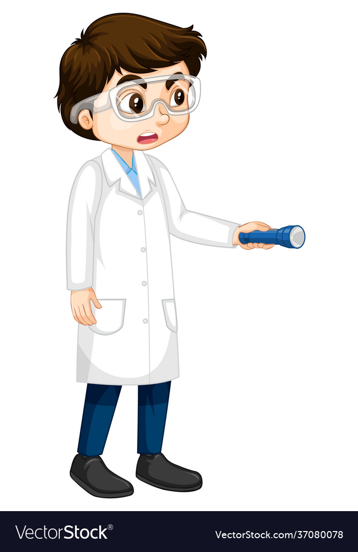 A Boy Cartoon Character Wearing Laboratory Coat Vector Image